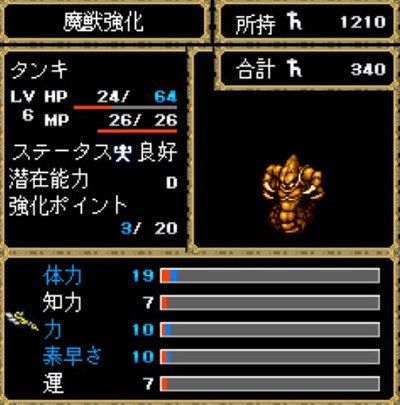 終盤ともなると1レベル上がるごとに4~5ポイント振れるので、勘所を掴んだプレイをしていると物理攻撃でクリティカル3000ダメージとか人間辞めたような値を叩き出せるので爽快感がありますヽ(*'▽')ノ